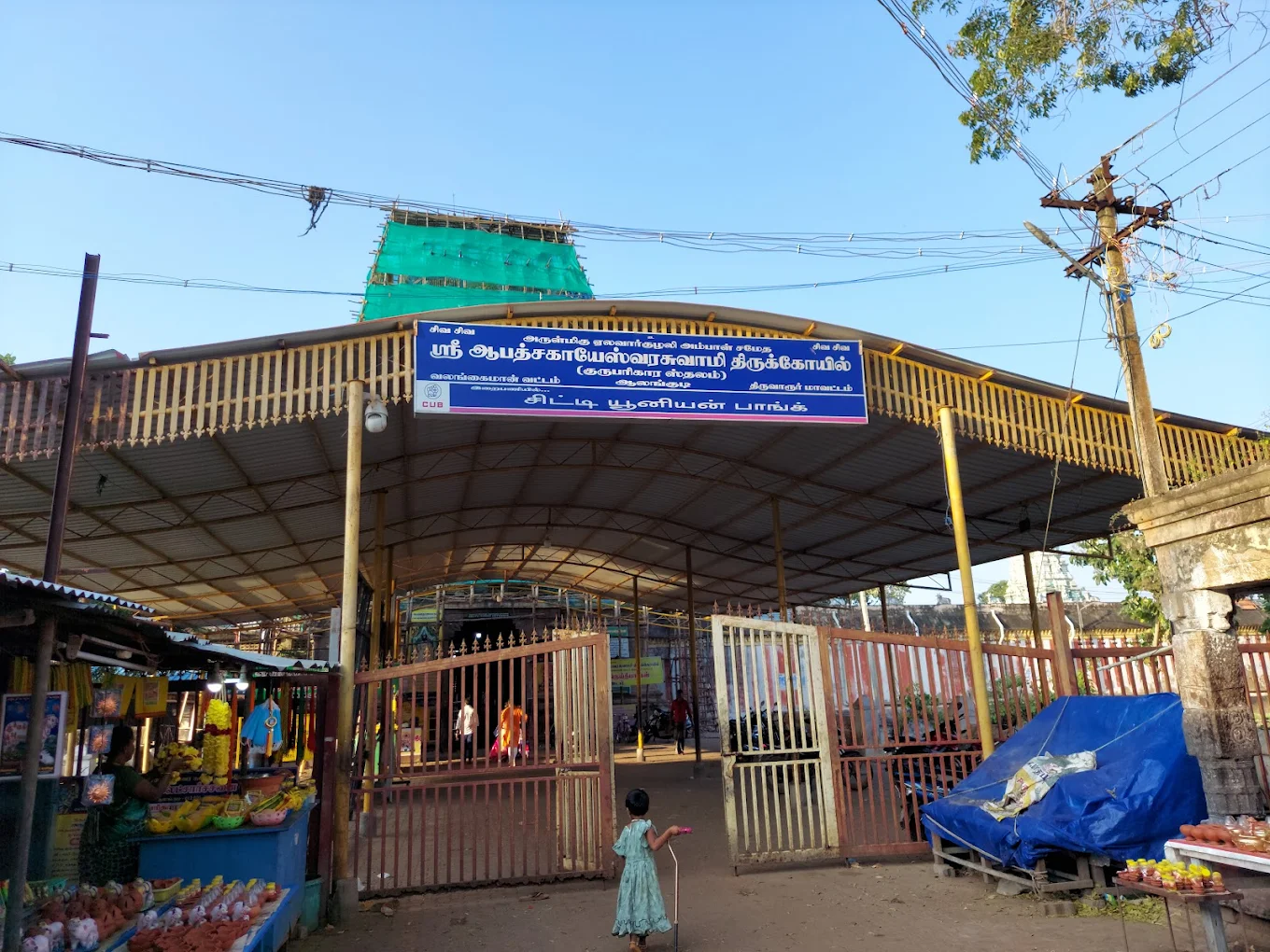 Main Sanctum: Lord Shiva as Abathsahayesvarar (lingam). The shrine of Guru (Jupiter) is present here, often identified with or through Lord Dakshinamurthy.