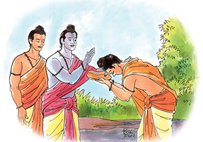 Rama surveyed the gathering. Right away Rama addressed Bharata with these words: “Bharata! Has mother Kaikeyi arrived? Where is she?” Turning to her, Rama bowed at her feet. Her words, like the prelude to a great drama, had inaugurated the mission of the incarnation