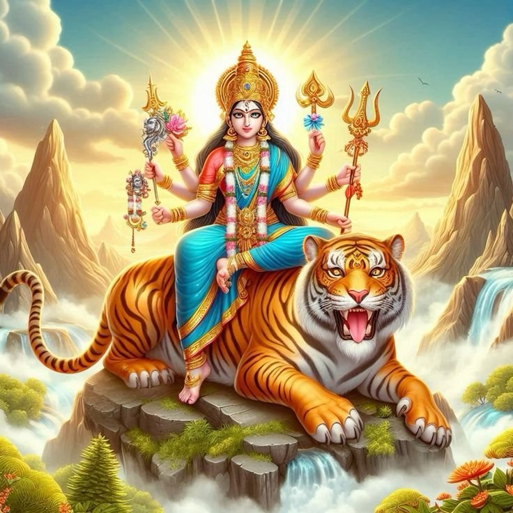 The verses of the hymn portray Devi as seated on the lion, holding weapons to protect the righteous and destroy adharma, while simultaneously showering blessings on her children with motherly affection. The poetic imagery often includes references to her dazzling form adorned with jewels, her lotus-like eyes radiating compassion, and her countless hands symbolizing her infinite powers. Chanting or meditating upon the Devi Bhujangam is believed to grant inner courage, clarity of mind, and freedom from suffering.