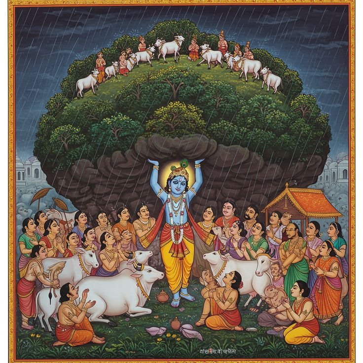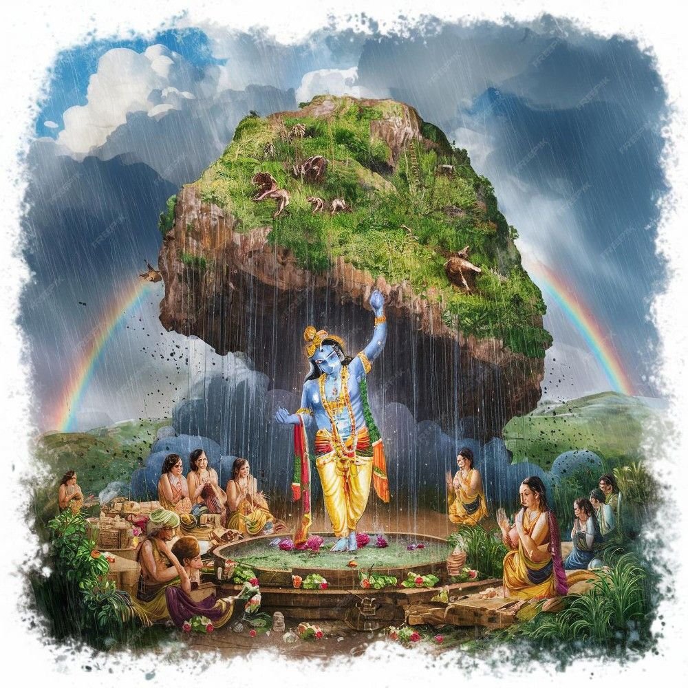 Govardhan Puja, celebrated on the day after Diwali, is a festival of deep cultural and spiritual importance that commemorates the divine act of Lord Krishna lifting the mighty Govardhan Hill to save the people of Gokul from the torrential rains unleashed by Lord Indra. According to the legend, the people of Gokul would worship Lord Indra for timely rains, but young Krishna advised them to instead worship Govardhan Hill, which provided them with fertile soil, water, grass for their cattle, and natural protection. Angered by this, Indra sent continuous rains to punish the villagers, but Krishna, using his divine power, lifted the hill on his little finger and sheltered all the people and cattle beneath it until the storm subsided. This victory highlighted the power of devotion, humility, and faith over arrogance and pride. To honor this event, devotees celebrate Govardhan Puja by preparing Annakoot, a grand feast made with a wide variety of food, grains, vegetables, and sweets, which is offered to Lord Krishna as an expression of gratitude. Many people also create symbolic representations of Govardhan Hill using cow dung, flowers, and food, which are worshipped with reverence, signifying respect for nature and cows. Families and communities gather for puja, sing devotional songs, perform rituals, and distribute prasad, spreading joy and togetherness. Govardhan Puja not only celebrates Lord Krishna’s protection but also reminds people to live in harmony with nature, appreciate its blessings, and practice humility, faith, and devotion in everyday life.