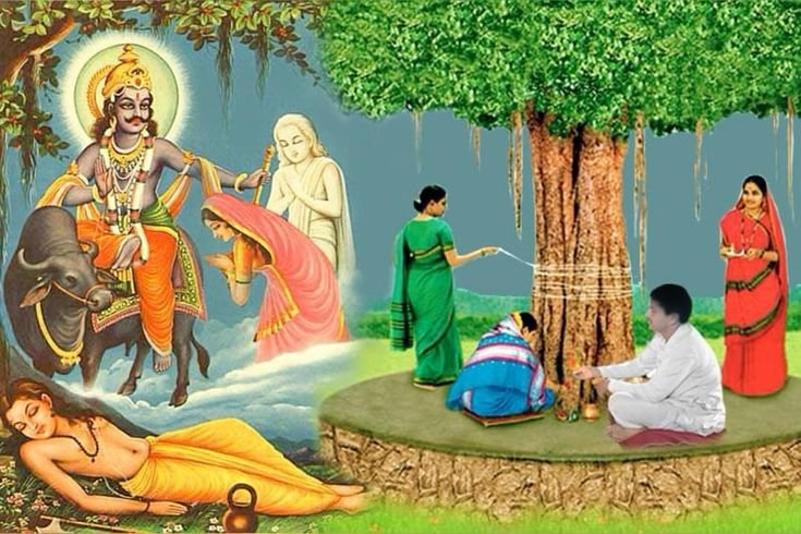 Vat Savitri Vrat is a fasting ritual observed by married women for their husbands’ long life, inspired by Savitri’s devotion to Satyavan.