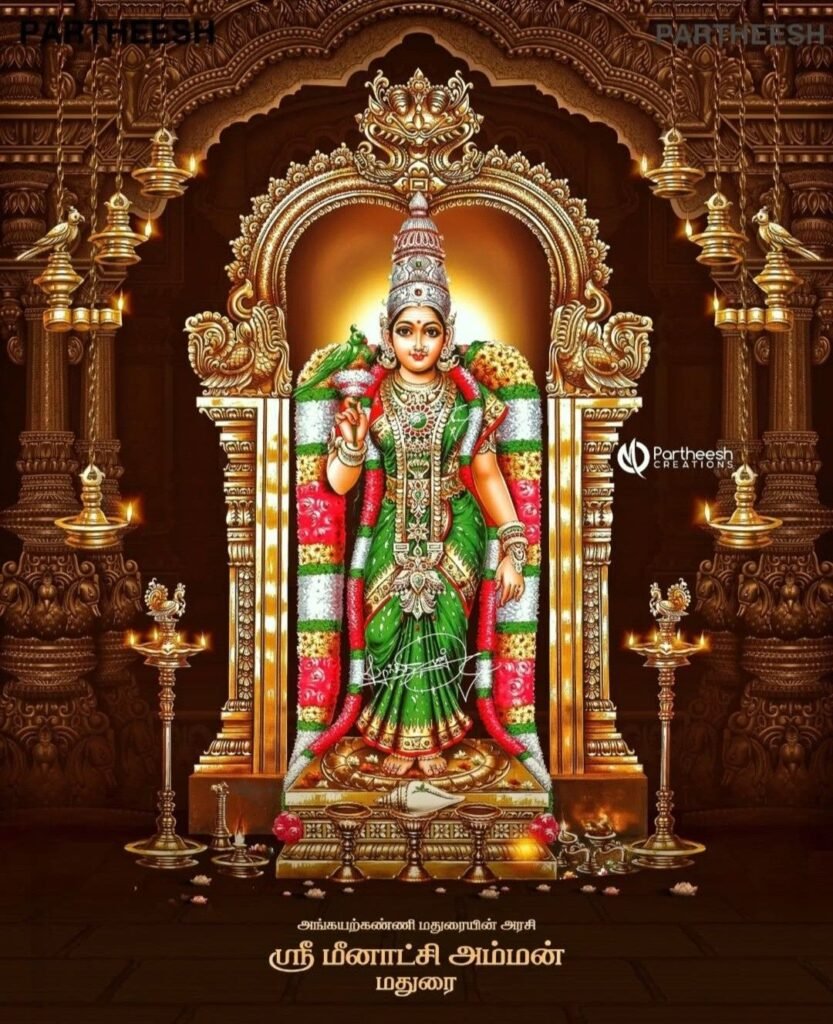 The Meenakshi Devi Temple in Madurai, Tamil Nadu, is a magnificent Dravidian-style temple dedicated to Goddess Meenakshi (an incarnation of Parvati) and Lord Sundareswarar (Shiva). Famed for its towering gopurams and intricate carvings, it stands as a symbol of divine love, art, and South India’s rich cultural heritage.