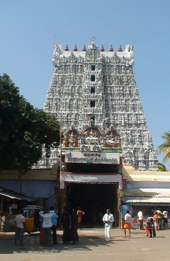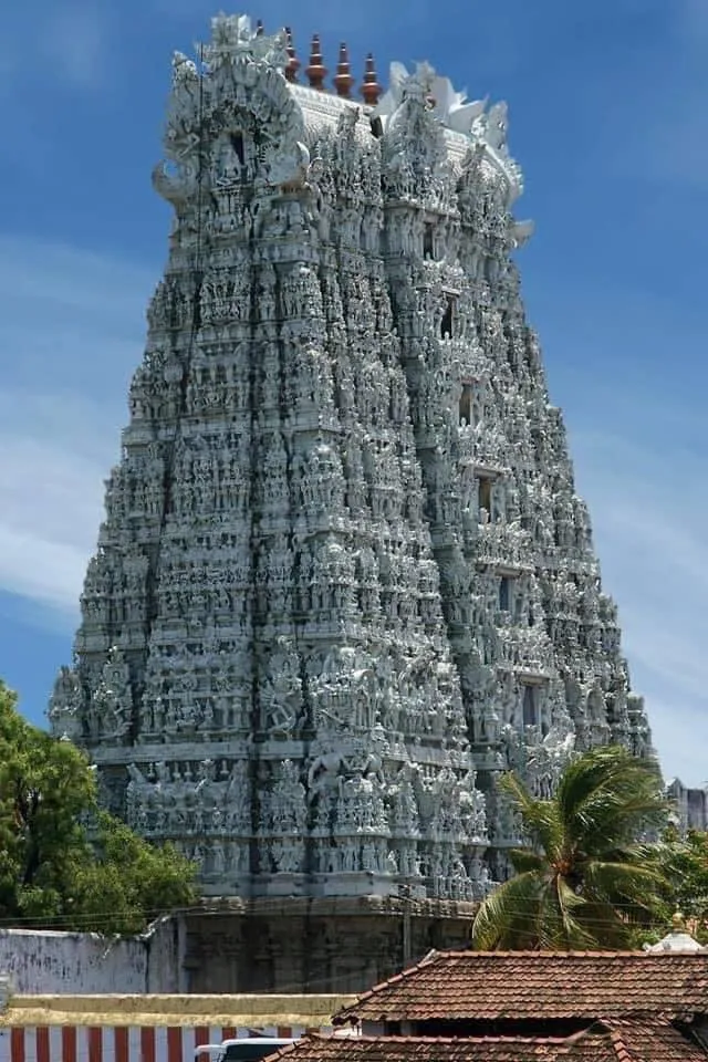 - Towering gopurams (gateway towers) intricately carved with celestial beings and mythological figures