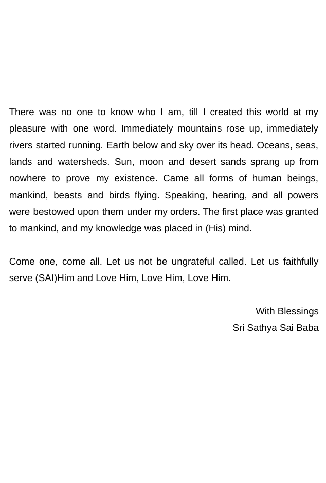 तत् त्वम् असि • Love is God • अयम् आत्मा ब्रह्म • Help Ever Hurt Never • ब्रह्मन् • Omnipotent • सर्वं खल्विदं ब्रह्म • Vedas are Breath of God • यद् भावं तद् भवति • Omniscient Love All Serve All • प्रज्ञानम् ब्रह्म • अहम् ब्रह्म अस्मि • God is Love • Omnipresent