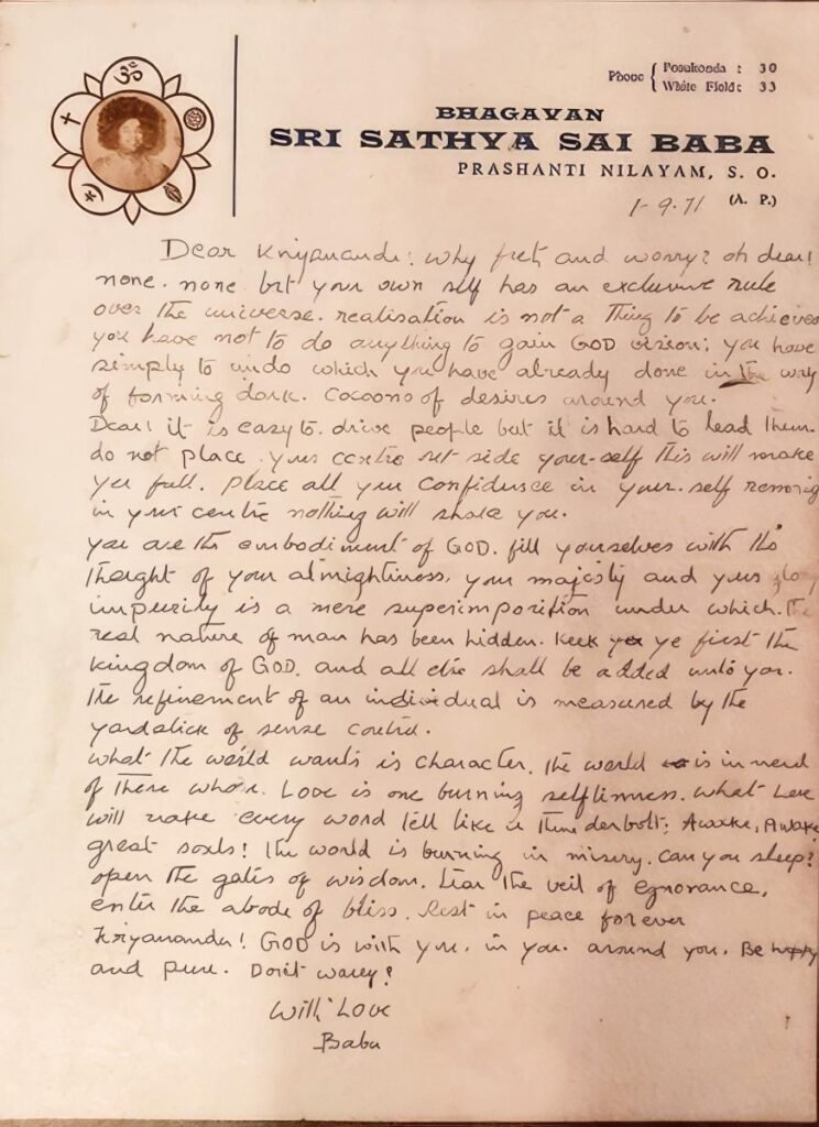 Swami Kriyananda is one of the first chief direct disciples of Paramahamsa Yogananda living with him during the last years of his life. The Swami traveled to India and met Sri Sathya Sai Baba.